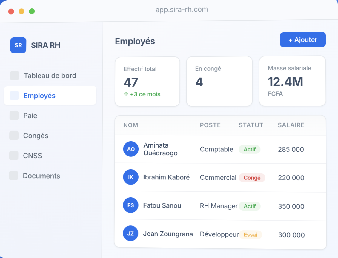Rejoignez les entreprises burkinabè qui ont choisi SIRA RH pour gagner du